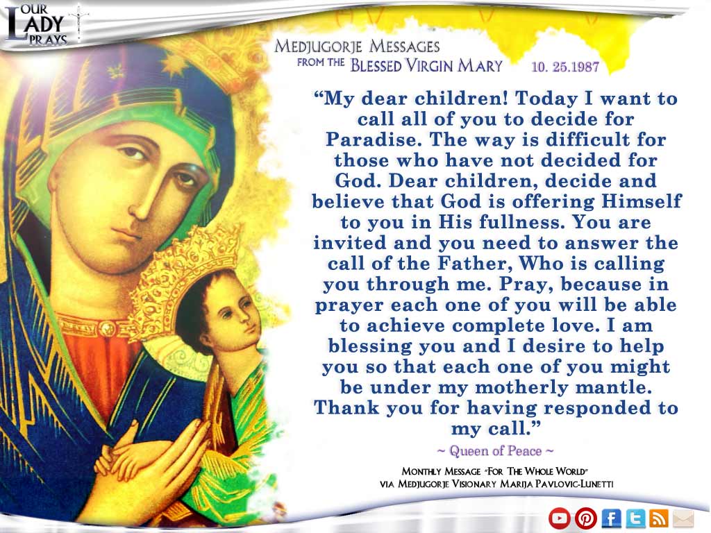 Medjugorje Message from the Blessed Virgin Mary 10.25.1987