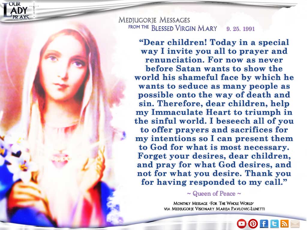 Medjugorje Message from the Blessed Virgin Mary 9.25.1991