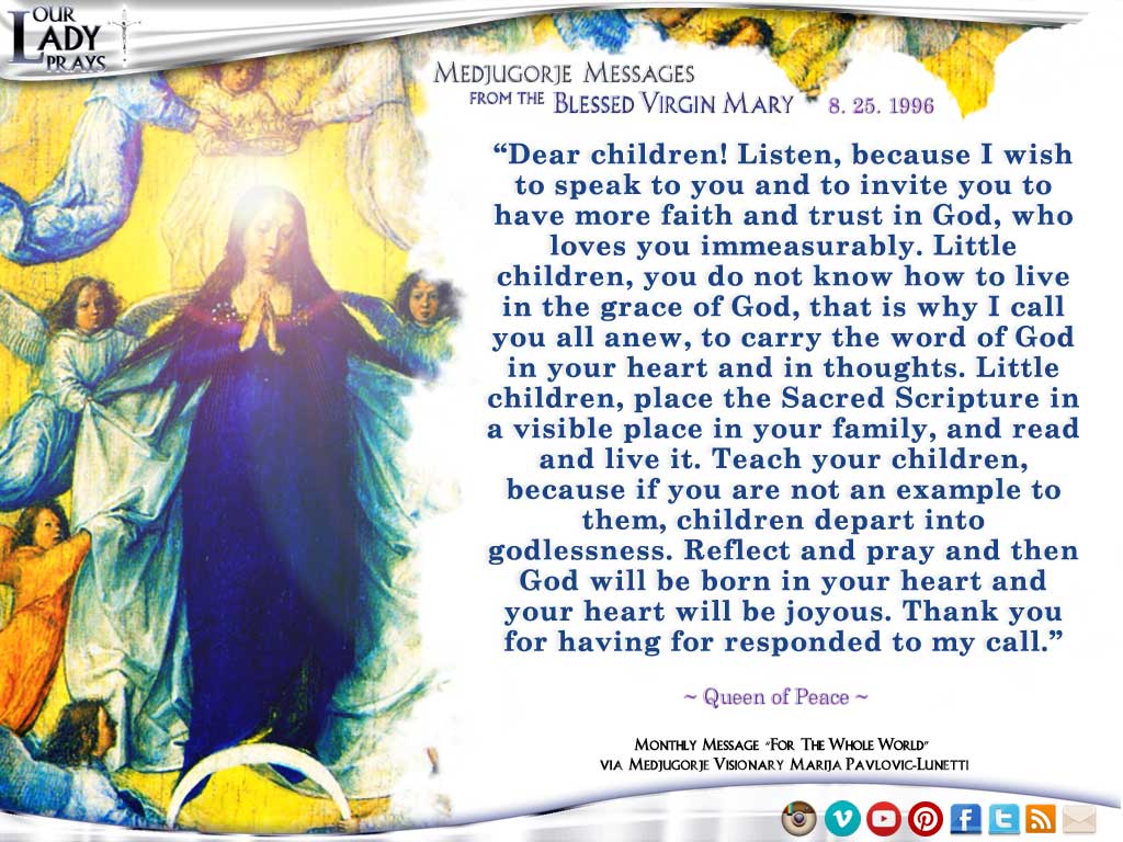 Medjugorje Message from the Blessed Virgin Mary 8.25.1996