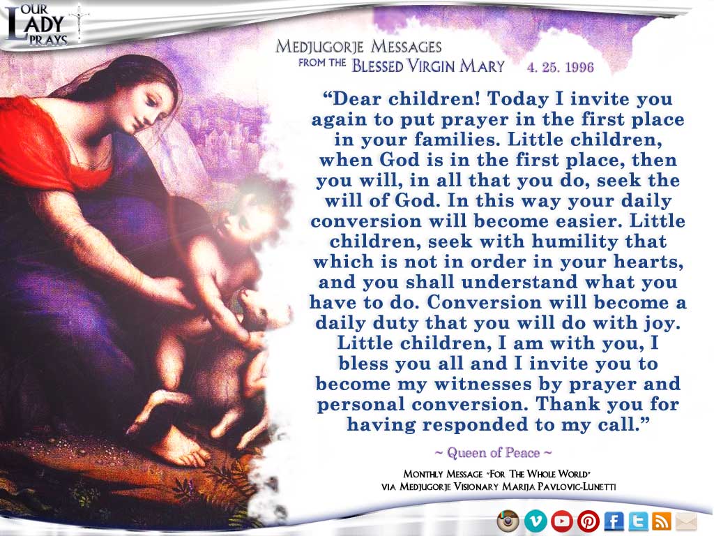 Medjugorje Message from the Blessed Virgin Mary 4.25.1996
