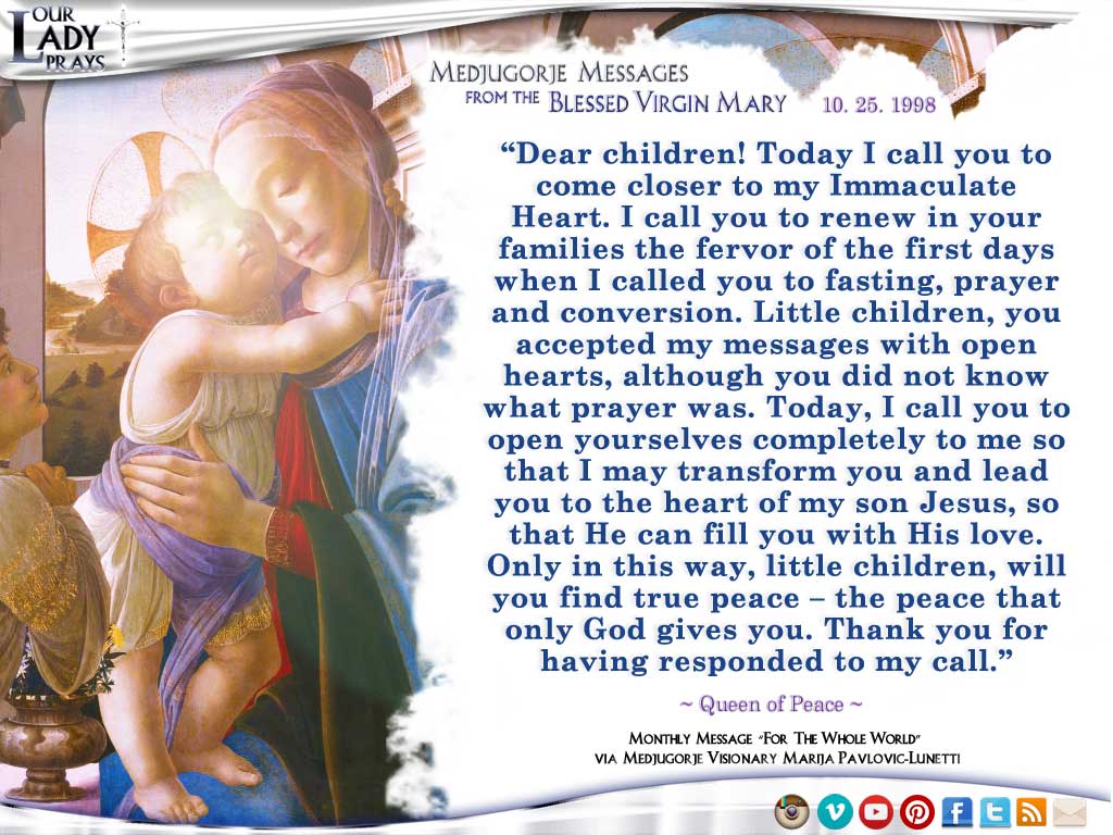 Medjugorje Message from the Blessed Virgin Mary 10.25.1998