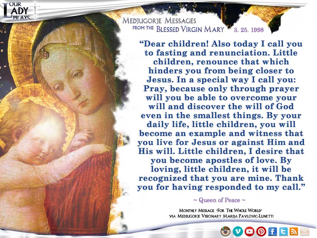 Medjugorje Message from the Blessed Virgin Mary 3.25.1998