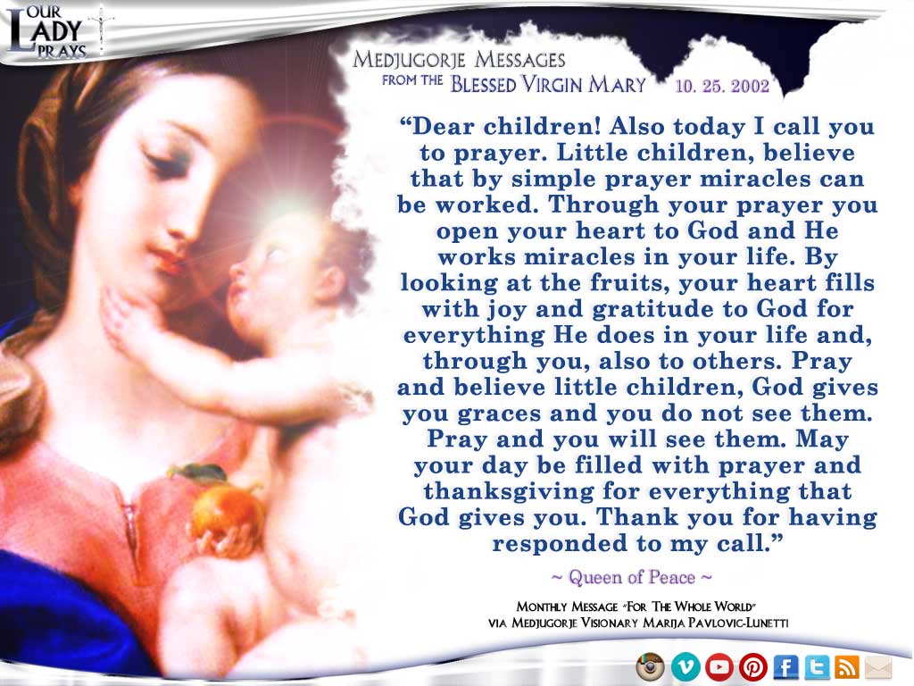 Medjugorje Message from the Blessed Virgin Mary 10.25.2002