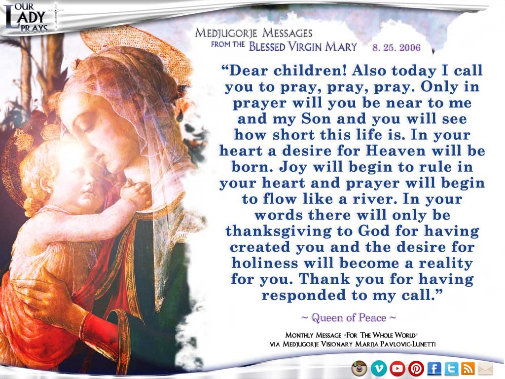 Medjugorje Message from the Blessed Virgin Mary 8.25.2006