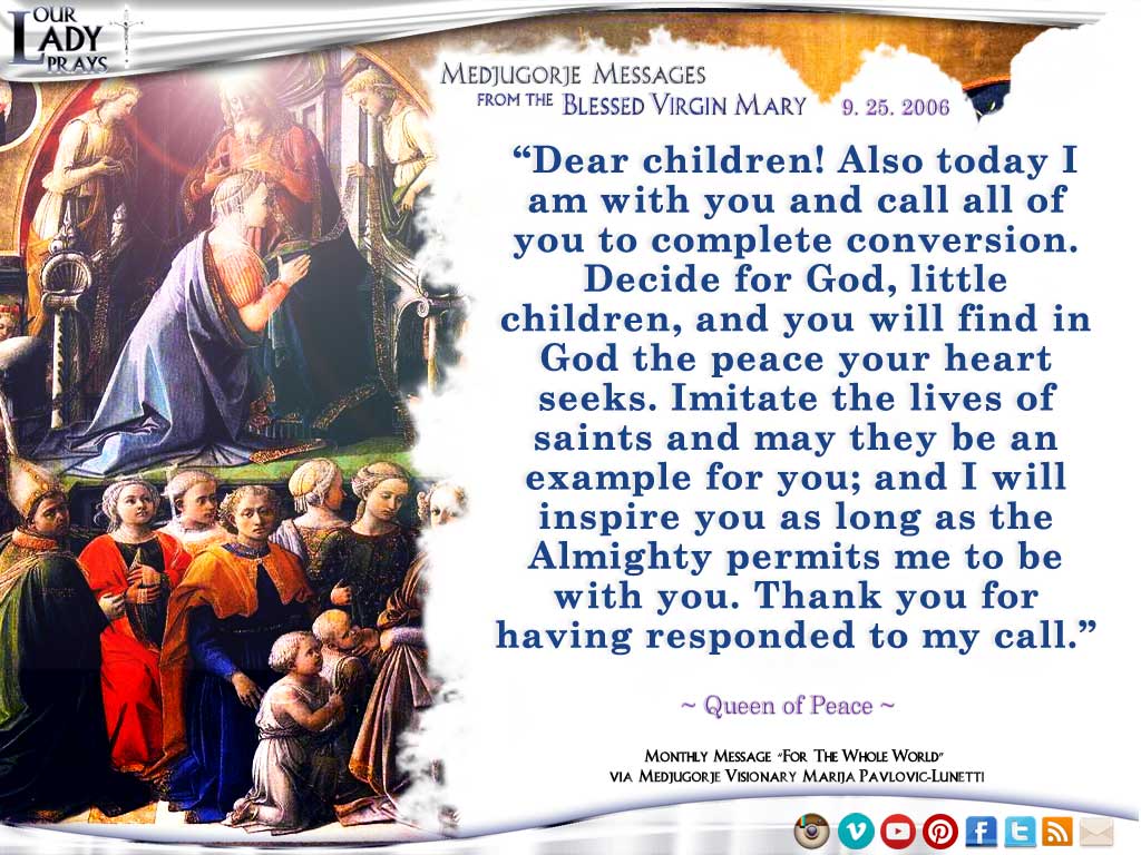 Medjugorje Message from the Blessed Virgin Mary 9.25.2006