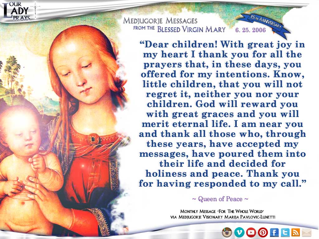 Medjugorje Message from the Blessed Virgin Mary 6.25.2006