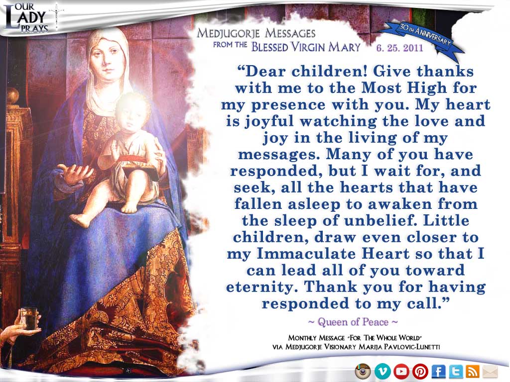 Medjugorje Message from the Blessed Virgin Mary 6.25.2011
